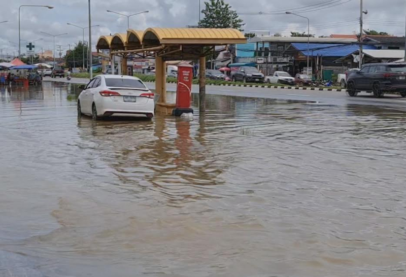 ผู้สื่อข่าวรายงานว่าจากสถานการณ์น้ำท่วมในจังหวัดสุโขทัย รวมทั้งมีฝนตกลงมาในปริมาณมากอย่างต่อเนื่อง ทำให้ระดับน้ำที่ท่วมขัง ใน ต.บ้านกล้วย มีปริมาณน้ำเพิ่มสูงขึ้น โดยระดับน้ำจากลำน้ำแม่รำพัน มีปริมาณเพิ่มขึ้น ไหลลงมาสู่คลองระบายน้ำช่วงระหว่างวิทยาลัยนาฏศิลป์และโรงพยาบาลสุโขทัย ทำให้ในบริเวณนี้เริ่มมีน้ำเอ่อล้นเข้าท่วมผิวถนน สายสุโขทัยเมืองเก่า ช่วงหน้าโรงพยาบาลสุโขทัยถึงวิทยาลัยเทคนิคสุโขทัย ทำให้โรงพยาบาลสุโขทัยต้องขนกระสอบทรายมาวางเป็นแนวกั้นน้ำไม่ให้ไหลเข้าท่วมในพื้นที่โรงพยาบาล