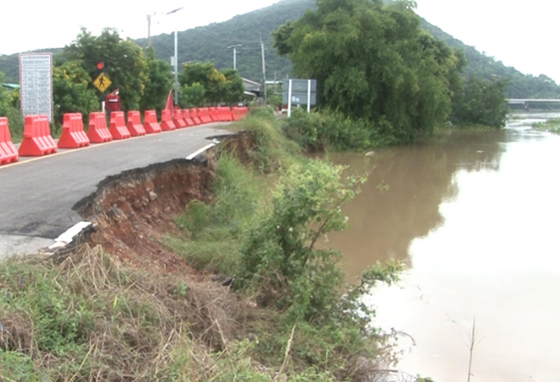 ชัยนาทน้ำเจ้าพระยากัดเซาะถนนพังหวั่นถนนขาด