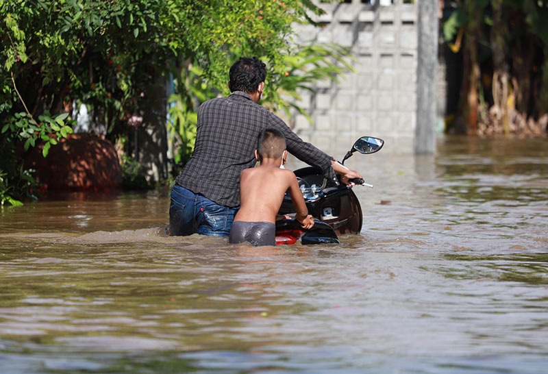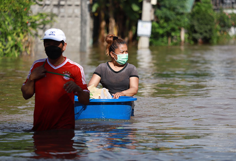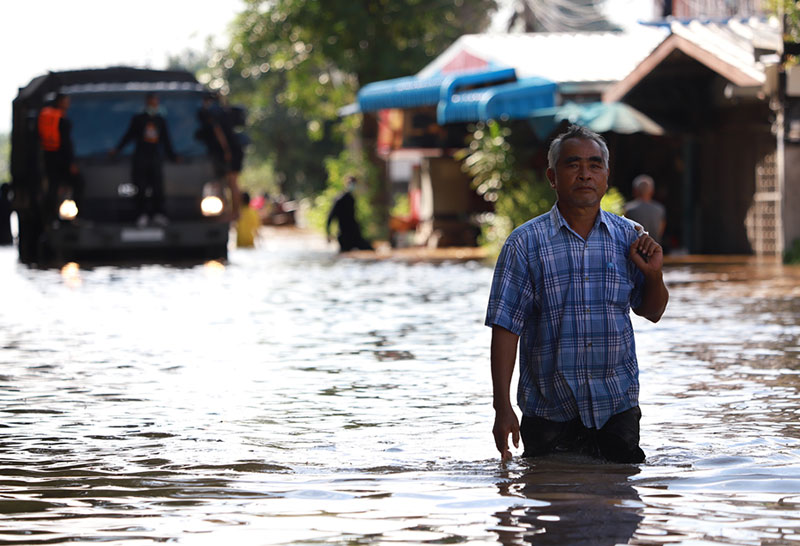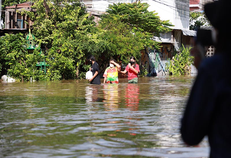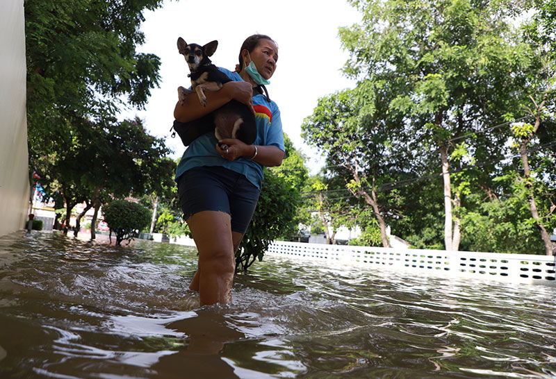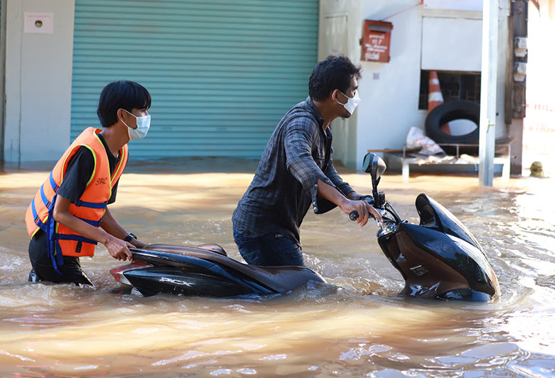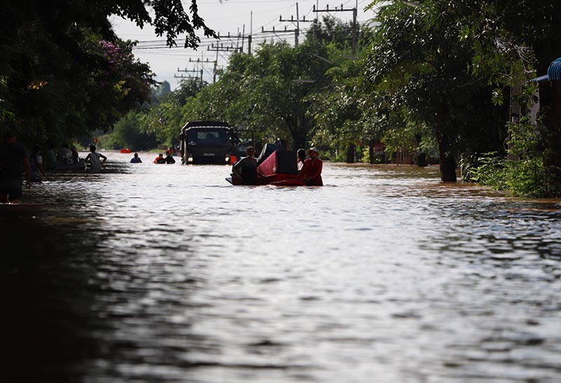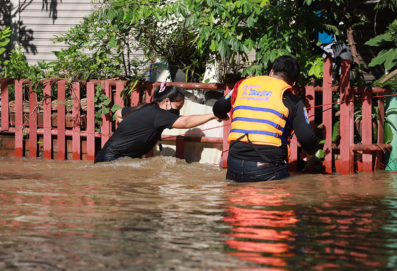 ขณะเดียวกัน เจ้าหน้าที่จากทุกภาคส่วน ทั้งทหาร กู้ภัย อาสาสมัคร เร่งนำรถทหาร เรือ เข้าไปอพยพผู้สูงอายุ และผู้ป่วยติดเตียงออกจากพื้นที่ก่อน บางจุดค่อนข้างเข้าไปลำบาก เพราะน้ำท่วมสูง รวมถึงเร่งนำอาหาร ข้าวกล่องเข้าไปแจกจ่ายประชาชนด้านในหมู่บ้าน เพราะไม่สามารถออกมาได้ อีกทั้งยังไม่รับประทานอาหารมาอย่างน้อยตั้งแต่ช่วงเย็นวันอาทิตย์ และมีประชาชนบางส่วน ที่ยังสามารถเดินออกมาได้ ก็นำสิ่งของจำเป็น เครื่องใช้ไฟฟ้า สัตว์เลี้ยงพวกสุนัข แมวใส่เรือ และกะละมังขนาดใหญ่ ลำเลียงออกมาไว้ข้างนอก
