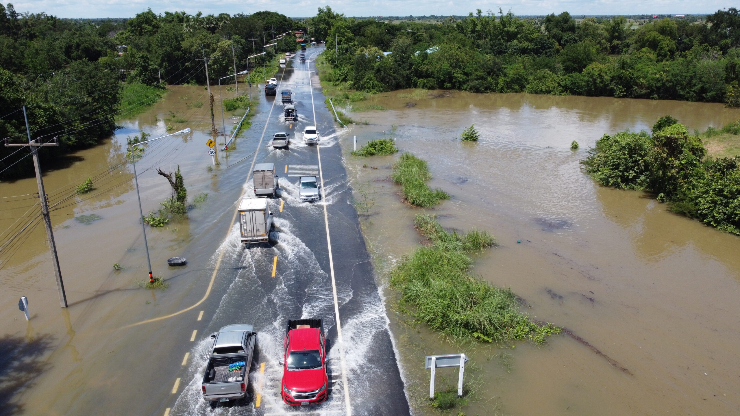 ผู้สื่อข่าวรายงานว่า จากกรณีคันดินกั้นอ่างเก็บน้ำลำเชียงไกร (ตอนล่าง) ต.บัลลังก์ อ.โนนไทย จ.นครราชสีมา ถูกมวลน้ำซัดพังทลายลงส่งผลทำให้มวลน้ำปริมาณมหาศาลไหลเข้าท่วมชุมชนตามเส้นทางลำห้วยลำเชียงไกรที่ไหลผ่าน เส้นทางจราจรถนนสุรนารายณ์ ทางหลวงหมายเลข 205 ช่วงโคกสูง – เข้าตัวอำเภอโนนไทย รถยนต์ขนาดเล็กทุกชนิดห้ามผ่าน เนื่องจากระดับน้ำท่วมสูง