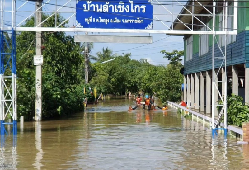 น้ำลำเชียงไกร-ลำตะคอง ยังไหลท่วมชุมชน เข้า อ.เมืองโคราช ทำถนนจมน้ำ รถตกไหล่ทาง ท่วม บ้านเรือน 2 ตำบล กว่า 300 หลัง