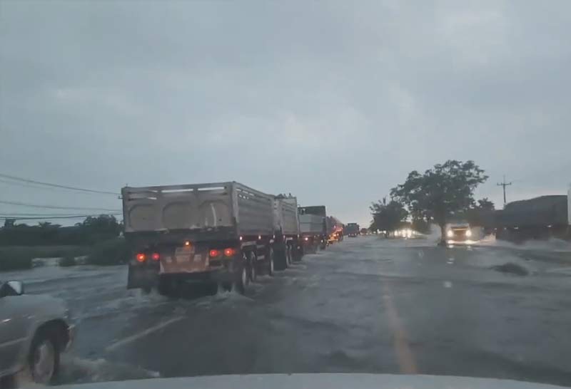 ขอนแก่นน้ำท่วมหลายพื้นที่ ประชาชนขับรถยนต์สัญจรฝ่ากระแสน้ำไหลเชี่ยว แผ่นป้ายทะเบียนหลุดออกหลายคัน ลอยเกลื่อนเต็มพื้นที่