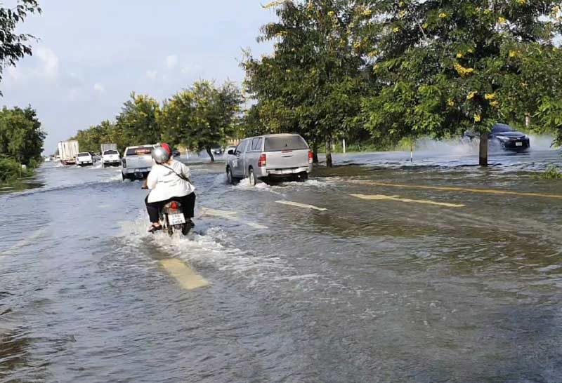 ระดับน้ำท่วมขังถนนมิตรภาพโคราช-ขอนแก่น ลดลงจนรถยนต์ขนาดเล็กสามารถสัญจรผ่านได้ แต่ต้องเพิ่มความระมัดระวัง