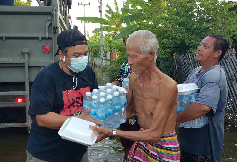ซึ่งได้มีผู้ใหญ่ใจดีทั้งภาครัฐ เอกชนห้างร้านบริษัทต่าง ๆ เห็นความเดือดร้อนของชาวบ้าน ลงมอบสิ่งของเครื่องอุปโภค บริโภคให้ชาวบ้าน เพื่อบรรเทาความเดือดร้อน แล้วที่ผ่านมา แต่ขณะนี้ได้เกิดปัญหาเพิ่มขึ้นมาอีกคือเรื่องน้ำกัดเท้าและโรคเท้าเปื่อยที่ได้ซ้ำเติมชาวบ้านหนักในขณะนี้ นำยาสามัญประจำบ้านมาบรรจุในถุงยังชีพให้ รวมทั้งยาแก้เท้าเปื่อย น้ำกัดเท้า ซึ่งในหลายหมู่บ้าน น้ำที่ท่วมอยู่นานกว่า 1 สัปดาห์ ทำให้น้ำเริ่มเสียและส่งกลิ่นเหม็น สร้างผลกระทบให้กับประชาชนที่ถูกน้ำท่วมให้หลายหมู่บ้าน
