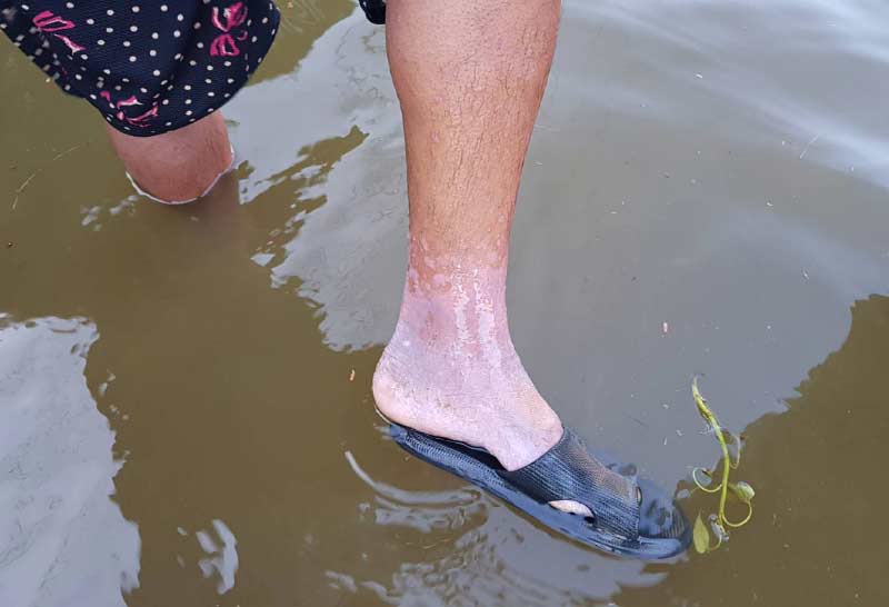 อ่วมซ้ำน้ำท่วมจ.ชัยภูมินานกว่าสัปดาห์แล้ว ขณะนี้ชาวบ้านเริ่มป่วยน้ำกัดเท้าหนักวอนขอยาแก้เท้าเปื่อย