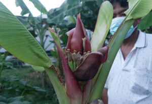 ชาวบ้าน ฮือฮา ปลีกล้วยประหลาด โผล่มาจากยอดต้น ชูช่อเหมือนดอกบัวสีแดงสดใส เจ้าของบอกนัยๆ เป็นมงคล เลข 9