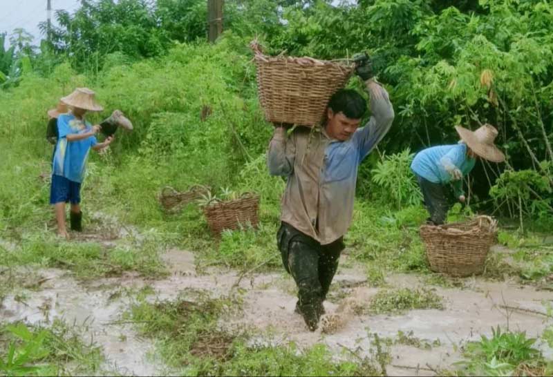 นายวิทยา โสภา อยู่บ้านเลขที่ 24 ม.1 เจ้าของสวนมันสำปะหลังกล่าวว่า เมื่อ3วันที่ผ่านมาเกิดฝนตกหนักทำให้น้ำจากคลองห้วยไคร้ไหลเข้าท่วมไร่มันสำปะหลังของตนเอง ที่อยู่ติดชายคลอง จึงพากันถอนมันหนีน้ำท่วม เพราะมันสำปะหลังแช่น้ำแค่คืนเดียวก็เน่า