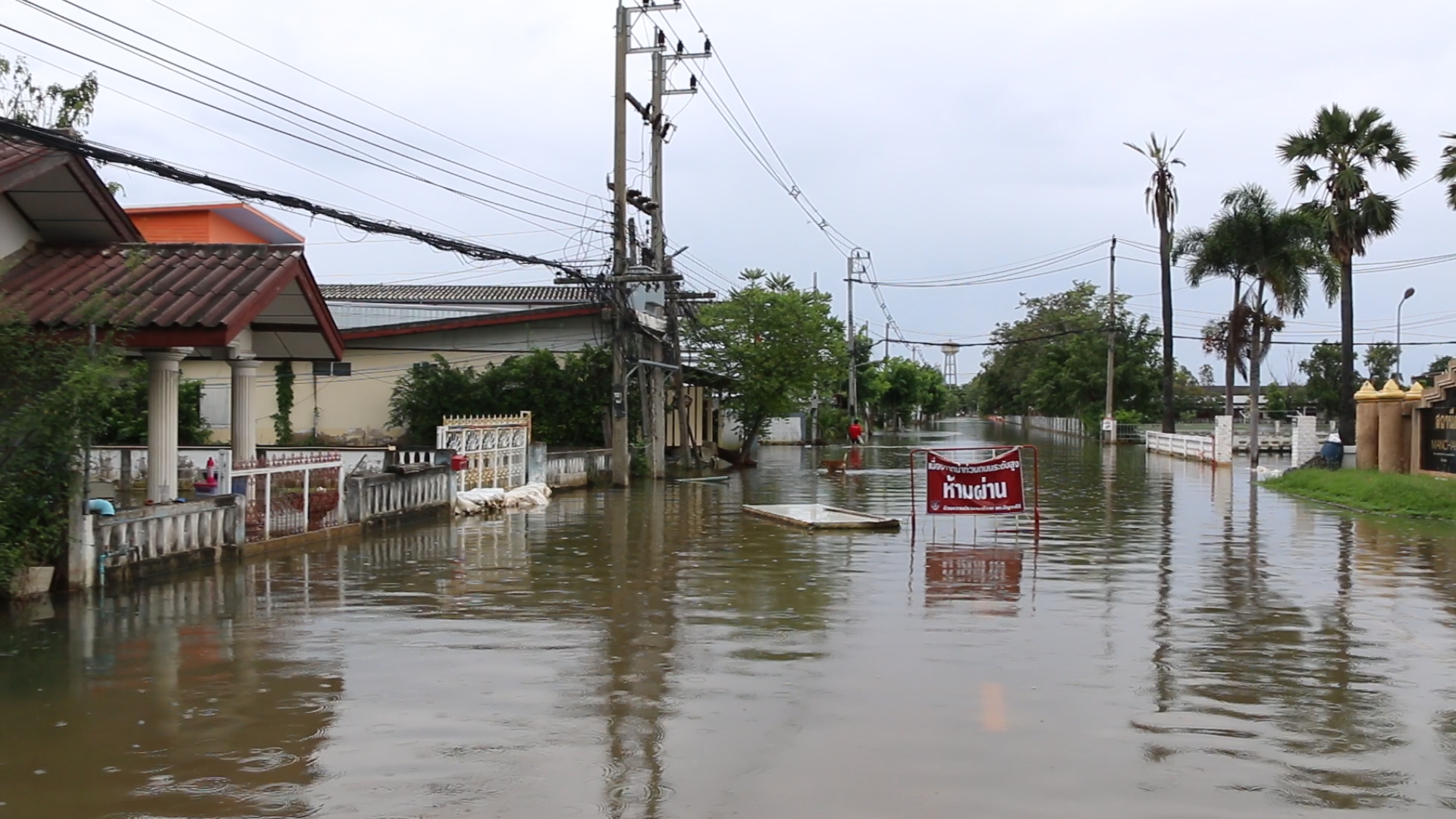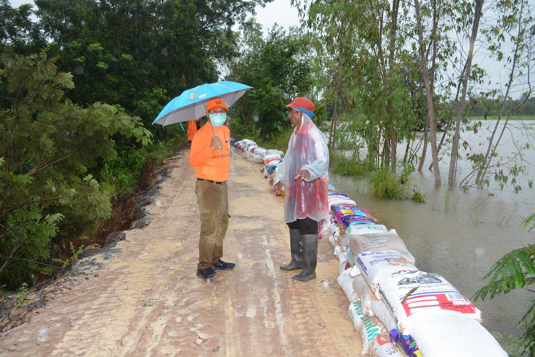 น้ำป่าทะลักล้นอ่างหนองแบกชะนัง 5 หมู่บ้านจมใต้น้ำ ขณะชาวบ้านนำกระสอบทรายมากั้นน้ำไม่ให้ท่วมถน