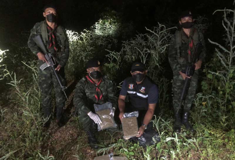 กองกำลังเทพสตรีตรวจยึดกัญชาอัดแท่งจำนวน 5 กิโลกรัม ถูกนำไปซุกในป่าริมรั้วชายแดนไทย-มาเลเซีย มูลค่า 250,000 บาท