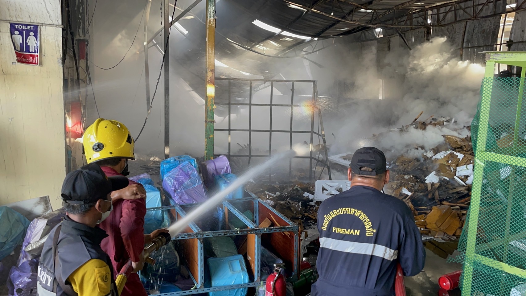 ปทุมธานีคืบหน้าเหตุเพลิงไหม้โรงงานโฟมเสียหายไม่ต่ำกว่า 100 ล้านบาท