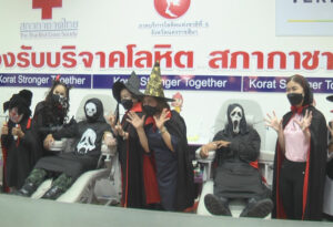 ที่ห้องรับบริจาคโลหิต ภาคบริการโลหิตแห่งชาติที่ 5 นครราชสีมา ภายในศูนย์การค้าเทอร์มินอล 21 อำเภอเมืองนครราชสีมา จังหวัดนครราชสีมา เจ้าหน้าที่ประจำห้องรับบริจาคโลหิต ได้พร้อมใจกันแต่งหน้าและแต่งกายเป็นผีสุดน่ากลัว ทั้งผีไทย และผีฝรั่ง เป็นการต้อนรับเทศกาลวันฮาโลวีน และสร้างกระแสกระตุ้นเชิญชวนให้คนมาบริจาคโลหิตกันมากขึ้นหลังจากสถานการณ์การแพร่ระบาดของไวรัสโควิด-19 ที่ผ่านมา ทำให้มีประชาชนบริจาคโลหิตน้อยลงกว่าเดิมมาก ส่งผลให้เกิดวิกฤติขาดแคลนโลหิตไปทั่วประเทศ ซึ่งผู้ร่วมบริจาคโลหิตในครั้งนี้ จะได้รับเสื้อคลุมผีประเภทต่างๆ กลับบ้านไปเป็นของที่ระลึกด้วย