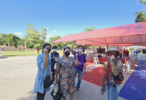 บรรยากาศงานลอยกระทง เผาเทียน เล่นไฟ วิถีใหม่ สุโขทัย นักท่องเที่ยวทั้งในจังหวัดสุโขทัย และต่างจังหวัดเริ่มทยอยเข้ามาภายในงาน ภายใต้มาตรการที่จังหวัดสุโขทัย กำหนดไว้ เมื่อนักท่องเที่ยวที่เข้ามาชมในงานและผ่านขั้นตอนที่กำหนดไว้แล้วทุกคนจะได้รับริสแบนด์สีประจำจังหวัด เพื่อแสดงว่าได้ผ่านขั้นตอนการคัดกรองของเจ้าหน้าที่มาแล้วและสามารถเข้าชมภายในงานได้