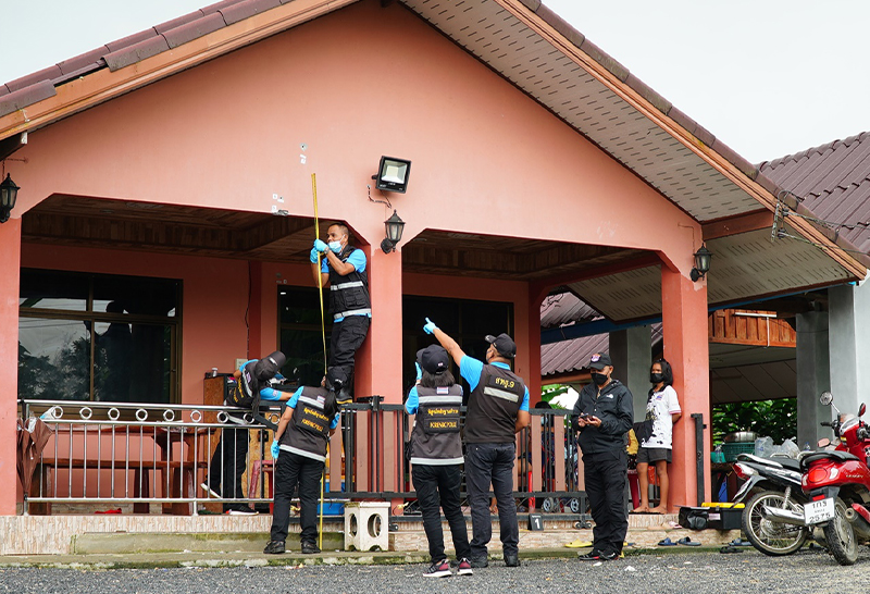 ร.ต.อ.ยุคนธร แสงระวี รอง สว.(สอบสวน) สภ.ป่าพะยอม พ.ต.อ.ธนสิทธิ์ จงหวัง ผกก.สภ.ป่าพะยอม พ.ต.อ.ยศวรรษ กระจ่างวงศ์ ผกก.สืบสวน ภจ.ว.พัทลุง พ.ต.ต.บุญทรง ผดุงธรรม สว.สส.ฯ เจ้าหน้าที่กองพิสูจน์หลักฐานพัทลุง และ นายตำรวจที่เกี่ยวข้อง ลงพื้นที่ตรวจสอบเหตุคนร้ายไม่ทราบชื่อ จำนวน ใช้รถเก๋งโตโยต้า รุ่นวีออส สีบรอนซ์เงิน ไม่ติดแผ่นป้ายทะเบียน ใช้อาวุธปืนไม่ทราบชนิด ยิงถล่มบ้านพักนายประกาย อายุ 61 ปี ชาว จ.พัทลุง ซึ่งเป็นบ้านชั้นเดียวแบบก่ออิฐถือปูนตั้งอยู่ริมถนนภายในหมู่บ้าน