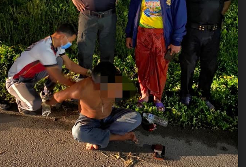 จากนั้น พ.ต.อ.ปิยภัทร ผกก.สภ.ระแงะ พร้อมผู้เกี่ยวข้อง จึงได้เดินทางไปรับตัวพร้อมตรวจยึดของกลางที่ใช้ในการก่อเหตุคือ อาวุธมีดและยานพาหนะที่ใช้หลบหนี เป็นรถ จยย.ยี่ห้อฮอนด้ารุ่นเวฟเบื้องต้นนายมาหะมะ ให้การรับสารภาพว่า ปาดคอมารดาของตนเองจริงเนื่องจากเมายาบ้าจนจิตหลอนคิดว่าแม่เป็นยักษ์ เจ้าหน้าที่จึงได้ควบคุมตัวนายมาหะมะ ลูกทรพีรายนี้ดำเนินคดีตามกฎหมายต่อไป