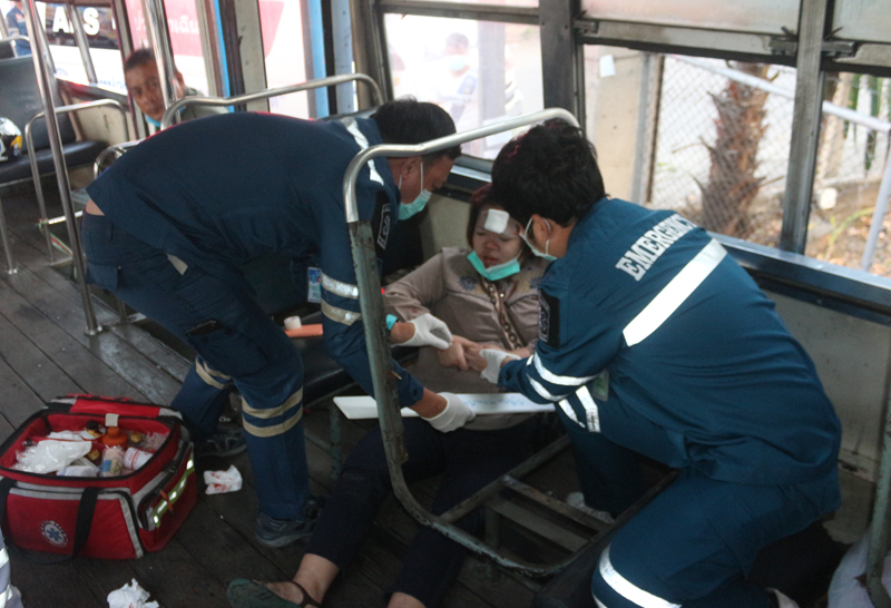ส่วนนายสุริยะ ชมพูนุช อายุ 54  ปี คนขับรถบอกว่า ตนเองรับผู้โดยสารมาจากฟิวเจอร์พาร์ค รังสิต  เมื่อมาถึงที่เกิดเหตุกำลังเบรกรถเพื่อที่จะรับผู้โดยสาร แต่เบรกนั้นหายไปและข้างหน้ามีรถจักรยานยนต์ตนจึงหักเข้าข้างทางจนมีผู้โดยสารได้รับบาดเจ็บดังกล่าว