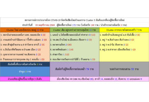 ดร.ทรงยศ คำชัย หัวหน้ากลุ่มงานควบคุมโรคติดต่อ สำนักงานสาธารณสุขจังหวัดเชียงใหม่ เปิดเผยสถานการณ์โรคโควิด-19 จังหวัดเชียงใหม่ ประจำวัน ภายหลังการประชุมคณะกรรมการโรคติดต่อจังหวัดเชียงใหม่ ซึ่งมีนายประจญ ปรัชญ์สกุล ผู้ว่าราชการจังหวัดเชียงใหม่ เป็นประธานการประชุมบ่ายวันนี้ ว่า เชียงใหม่พบผู้ติดเชื้อรายใหม่ 172 ราย เป็นผู้ติดเชื้อที่เดินทางมาจากต่างจังหวัด 3 ราย ที่เหลือเป็นผู้ติดเชื้อในจังหวัด โดยมาจากทั้งคลัสเตอร์ใหม่และคลัสเตอร์เดิมที่ยังคงมีการระบาดต่อเนื่อง 19 ราย ได้แก่ คลัสเตอร์มหาวิทยาลัยเทคโนโลยีราชมงคลล้านนา ดอยสะเก็ด 5 ราย, คลัสเตอร์งานแต่งบ้านป่าไม้แดง หมู่ 7 กึ๊ดช้าง อำเภอแม่แตง 2 ราย, คลัสเตอร์ หจก.แห่งหนึ่ง หมู่ 4 ท่าวังตาล อำเภอสารภี 2 ราย, คลัสเตอร์บริษัท ตำบลป่าแดด อำเภอเมือง 2 ราย, คลัสเตอร์บุคลากรทางการแพทย์ โรงพยาบาลสันทราย 2 ราย นอกนั้นเป็นคลัสเตอร์เล็ก ๆ ที่พบผู้ติดเชื้อรายใหม่คลัสเตอร์ละ 1 ราย