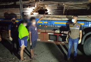 ต่อมา พ.ต.ต.สุริยา จอมสุริยะ สารวัตรสืบสวน สภ.ตากใบ จึงจัดกำลังเจ้าหน้าที่นั่งรถยนต์กระบะและขี่รถ จยย.ไปตรวจสอบบริเวณรายรอบของชายทะเลบ้านกูบู ม.6 ต.ไพรวัน อ.ตากใบ พบรถยนต์เทรลเลอร์ 18 ล้อ ยี่ห้อ HINO สีแดง ซึ่งบรรทุกท่อนไม้ยูคาลิปตัส เต็มคันรถจอดอยู่ โดยมีนายสุภัทร อายุ 37 ปี และ น.ส.ช่อผกา อายุ 24 ปี ซึ่งทั้ง 2 คน เป็นสามีภรรยากัน กำลังนั่งอยู่ในห้องโดยสาร เจ้าหน้าที่จึงได้แสดงตัวเพื่อขอตรวจค้น