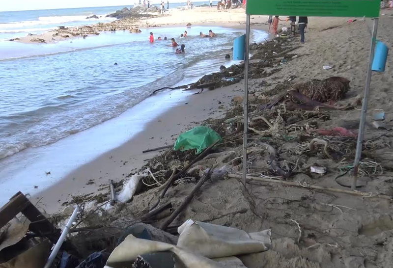 ทั้งเศษท่อนไม้ กิ่งไม้ เศษอวน ขวดพลาสติก ขวดแก้ว โฟม ที่ถูกคลื่นซัดขึ้นมากองอยู่ริมชายหาดในช่วงฤดูมรสุมที่มีคลื่นลมแรงตั้งแต่ปลายเดือนพฤศจิกายนและต้นเดือนธันวาคมที่ผ่านมา บางจุดที่มีขยะทะเลกองจำนวนมากนักท่องเที่ยวไม่สามารถลงไปเดินเล่นบริเวณชายหาด