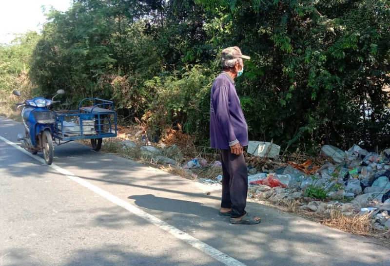 ขยะเน่าส่งกลิ่นเหม็นหลังคนลักลอบทิ้งริมถนน