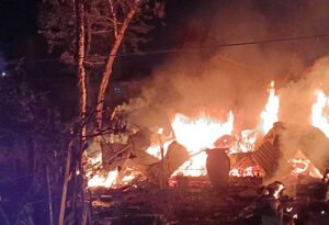 ไฟไหม้บ้านเพิงหมาแหงนวอดทั้งหลัง เบื้องต้นบ้านเสียหายทั้งหลัง รถจักรยานยนต์เสียหาย1คัน ไม่มีผู้ได้รับบาดเจ็บหรือเสียชีวิต