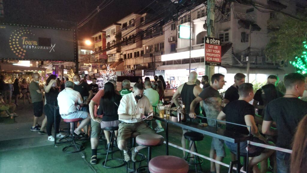นอกจากนี้ยังพบว่าที่บริเวณตลาดทีทาวน์ ซอยบัวขาว ที่เคยตกเป็นข่าวไล่ทำร้ายกันจนมีผู้เสียชีวิต ยังคงมีนักท่องเที่ยวทั้งชาวไทยและชาวต่างประเทศ เป็นจำนวนมาก เข้ามานั่งรับประทานอาหารและดื่มเครื่องดื่มแอลกอฮอล์กันอย่างแออัด โดยไม่มีเจ้าหน้าที่เฝ้าตรวจก่อนเข้าใช้บริการแต่อย่างใด มีเพียงจุดตรวจวัดอุณหภูมิตั้งโชว์ไว้เท่านั้น บริเวณฟุตบาทยังมีกลุ่มหญิงสาวและสาวประเภทสอง แต่งกายหวาบหวิว ไม่สวมแมส ยืนคุยกับชาวต่างประเทศ ในลักษณะคล้ายกับชักชวนออกไปเที่ยวต่อ เชิงค้าประเวณี สร้างความเสี่ยงต่อการแพร่ระบาดของเชื้อไวรัสโควิด 19 เป็นอย่างมาก