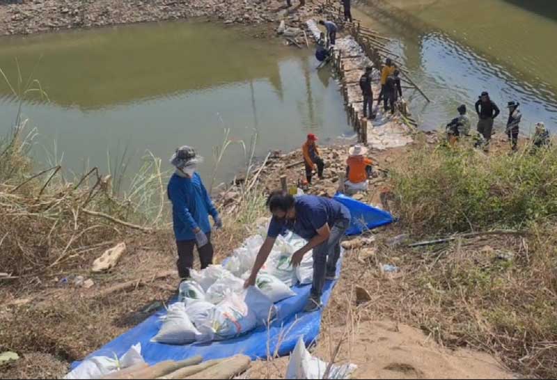 สุโขทัย ชาวบ้าน ต.ปากแคว ร่วมใจสร้างทำนบกั้นน้ำกลางแม่น้ำยมหนีแล้ง