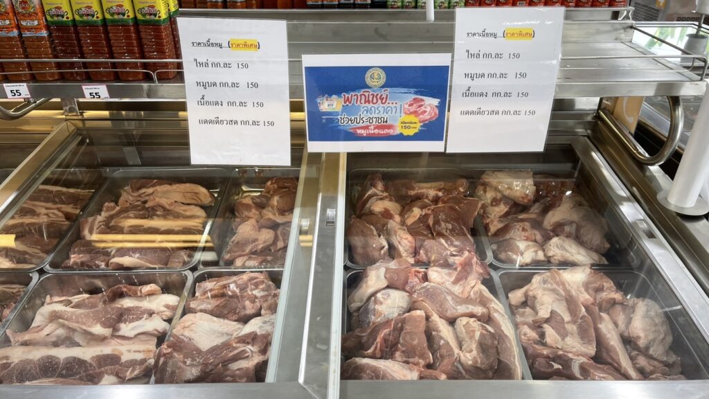โดยจะเริ่มตั้งแต่วันที่ 8 กุมภาพันธ์2565 ถึงวันที่ 14 กุมภาพันธ์ 2565 เพื่อลดค่าครองชีพของประชาชนซึ่งราคาเนื้อหมูก็จะถูกกว่าราคาหน้าโรงงานอย่างน้อยลดลงมากิโลกรัมละ10 บาทซึ่งที่ตลาดสายไหมราคาหมูเนื้อแดงกิโลกรัมละ 140บาท แต่ถ้าวันที่ 8 กุมภาพันธ์ 2565 ราคาน่าจะลดเหลือกิโลกรัมละ 130 บาทซึ่งเราจะให้ซื้อได้คนละไม่เกิน10 กิโลกรัมเพราะว่าเราคิดว่าถ้าเป็นประชาชนทั่วไปหรือพ่อค้าแม่ค้าที่เปิดร้านอาหารตามสั่งก็น่าจะเพียงพอ
