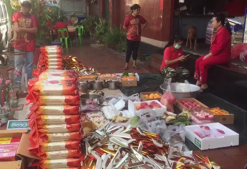 นายฮันยัน บอกว่า เดิมเป็นชาวซัวเถาประเทศจีน เข้ามาอยู่เมืองไทยตั้งแต่อายุ20ปี และมาเปิดกิจการขายข้าวสารอยู่ที่อ.หาดใหญ่ จ.สงขลา ในช่วงตรุษจีนของทุกปีก็จะแจกข้าวสารให้ชาวบ้านในเมืองหาดใหญ่ได้กินกันทุกปีเพื่อตอบแทนบุญคุณแผ่นดินไทยที่มาอาศัยอยู่และภูมิใจที่ได้มาอยู่เมืองไทยเพราะอบอุ่นและจะแจกข้าวสารช่วงตรุษจีนต่อไปเรื่อยๆส่วนบรรยากาศที่หน้าร้านก็มีการสร้างราวกระดาษเงินกระดาษทองยาวเกือบ20 เมตรเพื่อสร้างสีสันอีกด้วย