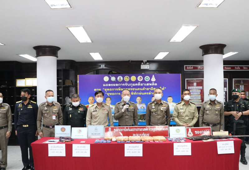 ศรีสะเกษ รอง ผบช.ภาค 3 แถลงผลการจับกุมยาบ้า 72,348 เม็ด ผู้ต้องหา 169 คน ยึดทรัพย์มูลค่า 1,487,000 บาท อาวุธปืน 3 กระบอก