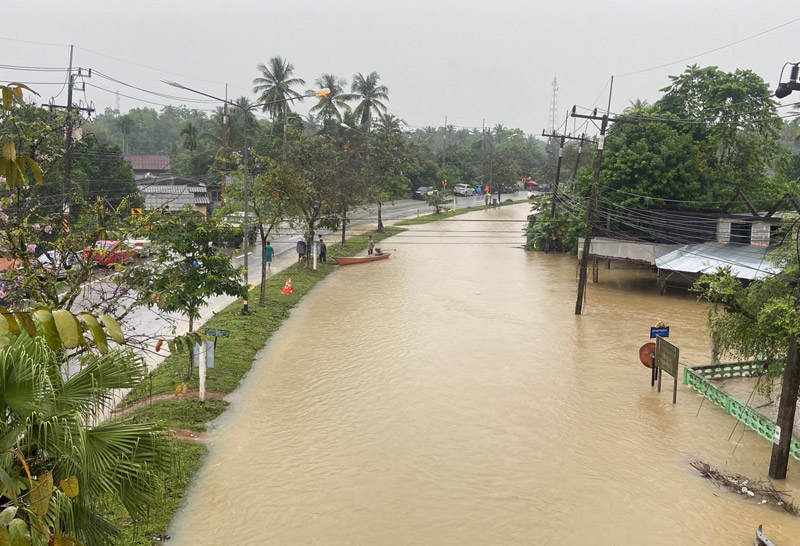 มวลน้ำทะลักล้นพนังกั้นน้ำชั่วคราว ไหลบ่าท่วมชุมชนตลาดมูโนะ จ.นราธิวาส ชาวบ้าน 650 ครัวเรือนอ่วม!