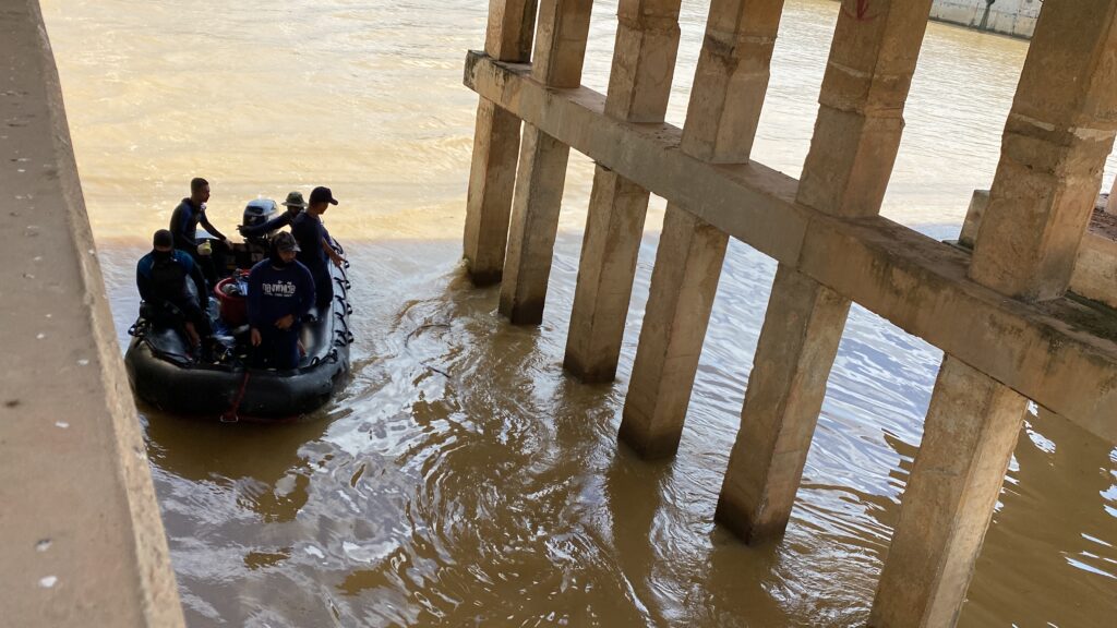 ทัพเรือภาคที่ 2 นำเรือยางออกดำน้ำค้นหาร่างของชายชาวไทยใหญ่ที่ประสบเหตุทอดแหหาปลา และตกลงไปในคลองระบายน้ำ ร.1