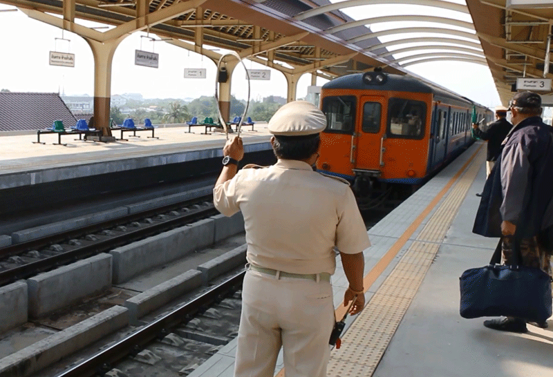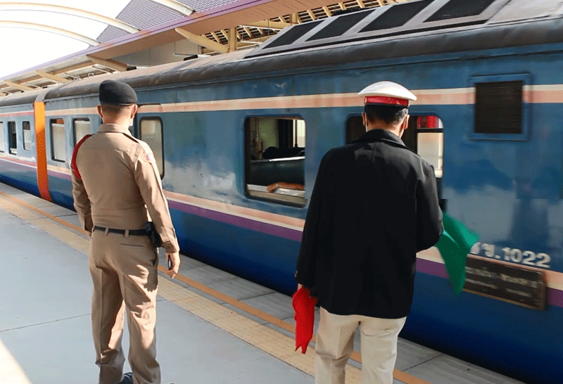 ที่สถานีรถไฟ จ.ขอนแก่น นายศักรินทร์ แสงอรุณ นายสถานีรถไฟขอนแก่น พร้อมด้วยเจ้าหน้าที่ตำรวจรถไฟขอนแก่น อำนวยความสะดวกให้กับผู้โดยสารและจัดการการเดินรถในเที่ยวขบวนรถไฟ ที่มีกำหนดรับ-ส่งที่สถานีรถไฟขอนแก่น ตามตารางการให้บริการ ท่ามกลางมาตรการควบคุมการแพร่ระบาดของเชื้อไวรัสโควิด-19 อย่างเข้มงวด