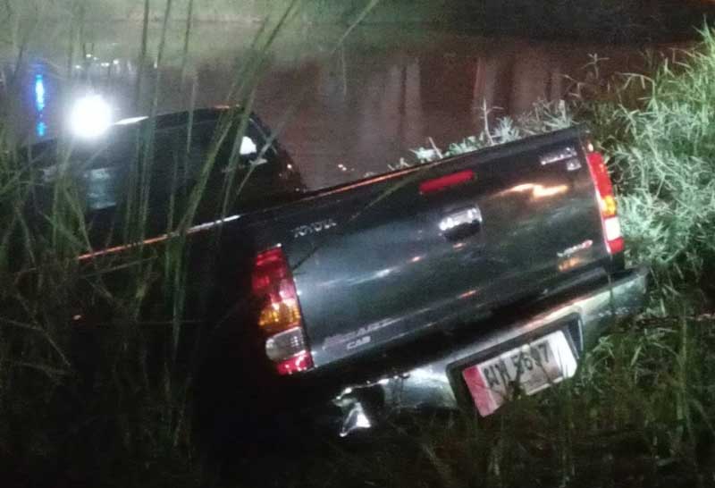 GPS พากระบะหลงทางพุ่งลงคลองที่โคราช
