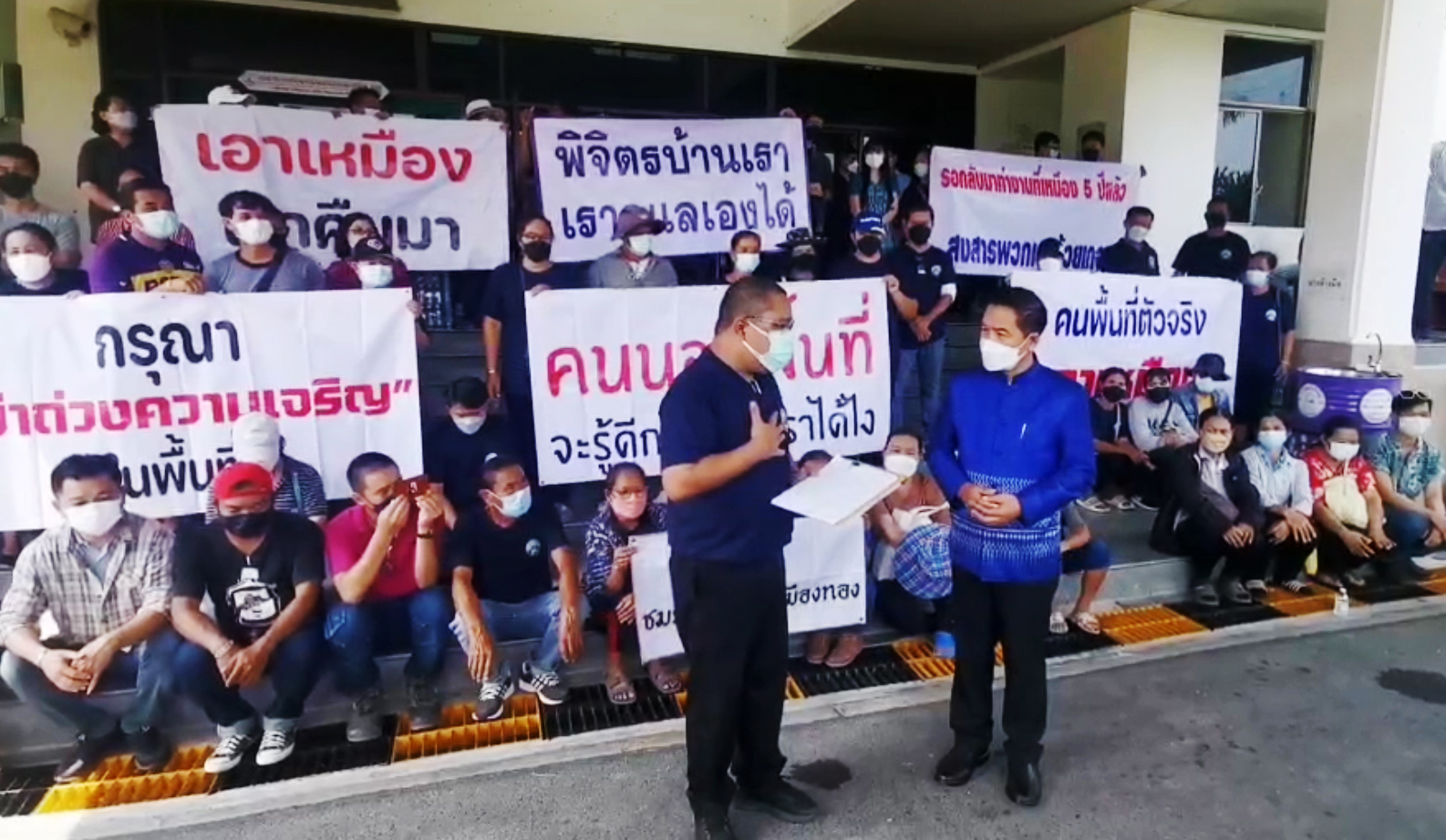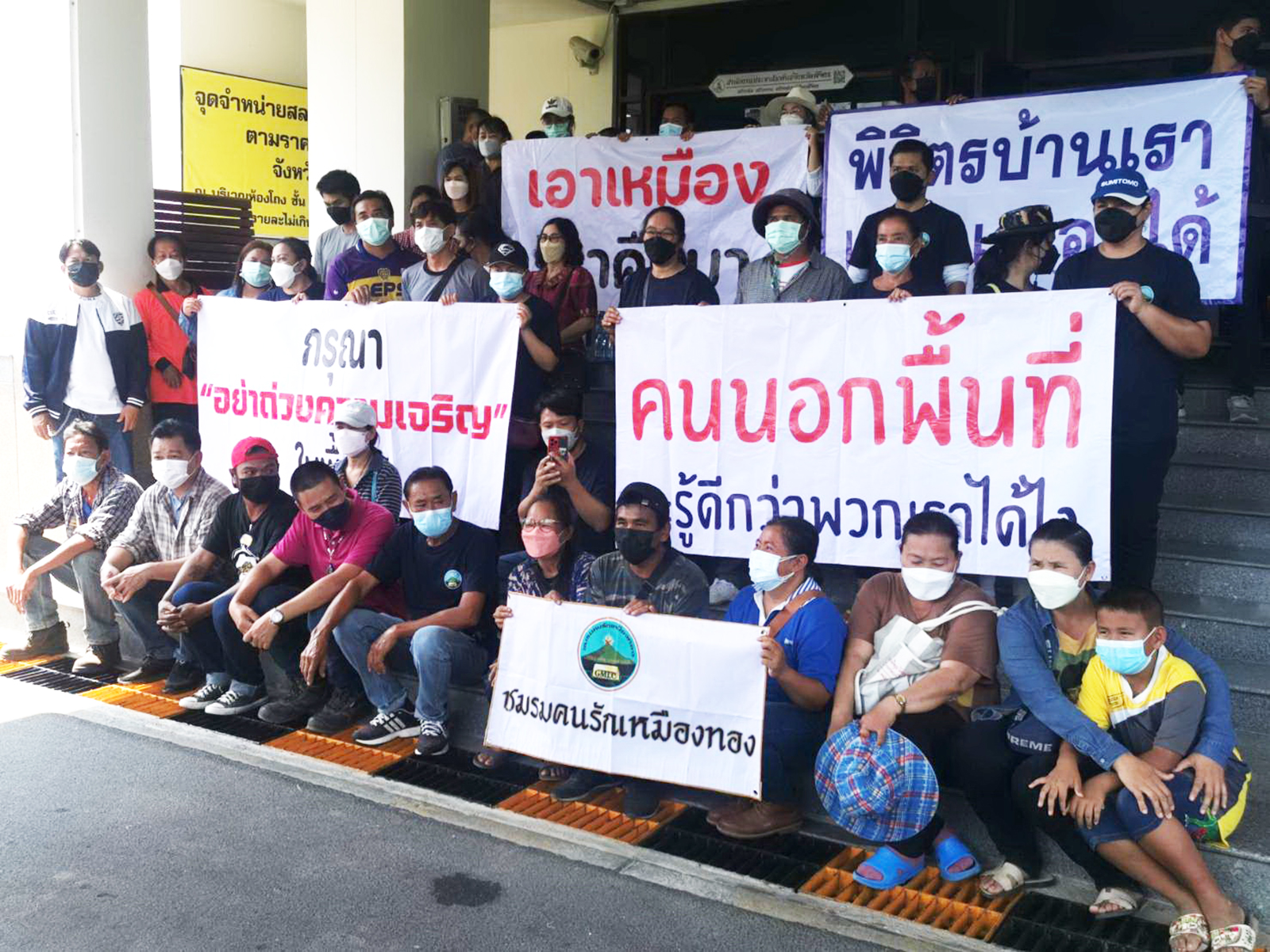 ชาวบ้านตัวจริงชูป้ายหนุนรัฐบาลให้ใบอนุญาตเปิดเหมืองทองอัครากระตุ้นเศรษฐกิจ