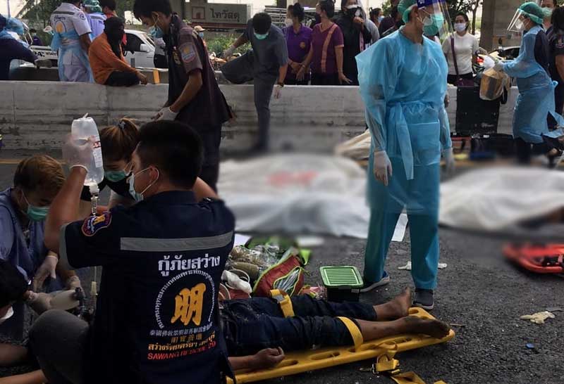 รถทัวร์กรุงเทพฯ-ร้อยเอ็ด อุบัติเหตุชนตอม่อหน้าโรบินสันสระบุรี ดับ 6 เจ็บกว่า 20 ราย คาดคนขับอาจหลับใน การจราจรติดขัดหนัก