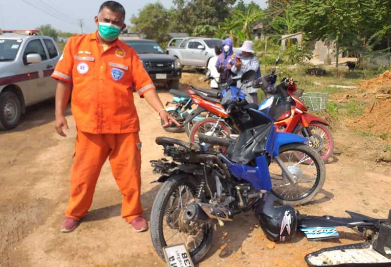 เด็กชาย 13 ปี ขี่ จยย.ไปรับเพื่อน นร.หญิงจะไป รร. ได้ขับรถข้ามทางรถไฟแต่ไม่พ้น ถูกชนท้าย ดญ.กระเด็นชนแผงกั้นฉุกเฉิน ดับคาที่