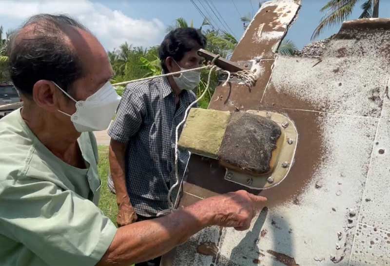 โดย นายปราโมทย์ เรืองดิษฐ์ กำนันตำบลท่าพญา เปิดเผยว่า ได้มีชาวบ้านเดินหาของเก่าขายบริเวณชายหาดและพบเห็นชิ้นส่วนดังกล่าว แต่ไม่มั่นใจว่าเป็นชิ้นส่วนอะไร จึงประสาน ผู้ใหญ่บ้าน และเพื่อนบ้านช่วยกันขนย้ายมาเก็บไว้ที่ สำนักงานธนาคารปูม้า ซึ่งขณะนี้ทางอำเภอปากพนัง ได้รายงานให้ทางจังหวัดทราบแล้ว โดยส่งรูปชิ้นส่วนปริศนาให้ผู้เชี่ยวชาญด้านการบิน ซึ่งได้รับคำตอบว่า 80 % มั่นใจว่าเป็นชิ้นส่วนอากาศยาน