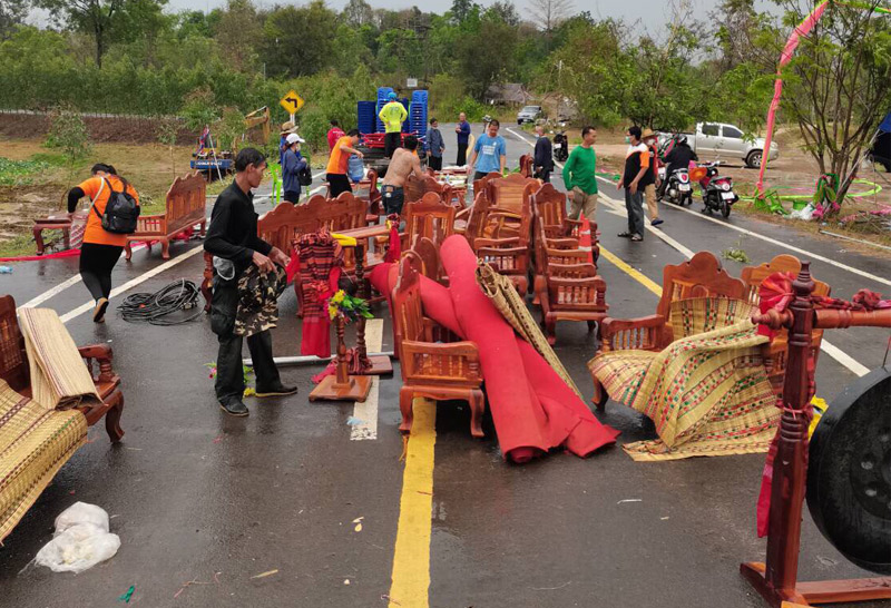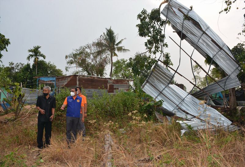 พายุฤดูร้อนอ.ถล่มโพธิ์ศรีสุวรรณ ในพื้นที่จ.ศรีสะเกษ บ้านพังยับ 45 หลัง ทำให้ฟ้าผ่าวัวตาย 3 ตัว