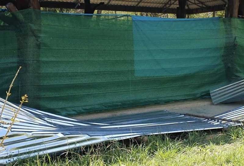 ผู้สื่อข่าวจึงลงพื้นที่ ไปวัดบ้านหนองเสากี่ ตำบลเมืองคง อำเภอคง จังหวัดนครราชสีมา เพื่อติดตามสถานการณ์ ซึ่งพบเจ้าหน้าที่อาสาสมัครสาธารณสุขประจำหมู่บ้าน (อสม.) กำลังช่วยกันทำความสะอาดพื้นที่โดยรอบ ที่ถูกพายุฤดูร้อนพัดถล่ม และมีเจ้าหน้าที่จากโรงพยาบาลคง สวมชุดป้องกันการติดเชื้อ เข้าทำการเก็บสิ่งของปนเปื้อนภายในพื้นที่โรงพยาบาลสนาม โดยนางกัญณิการ์ จิตรหาญ เจ้าหน้าที่พยาบาลวิชาชีพตำบลเมืองคง เปิดเผยว่า จากเหตุการณ์พายุฤดูร้อนที่เกิดขึ้นเมื่อวันที่ 25 มีนาคม 2565 เวลาประมาณ 17.00 น. ตามคลิปวิดีโอที่ผู้ป่วยรายหนึ่งบันทึกได้ ขณะเกิดลมพายุพัดอย่างรุนแรงเข้ามาภายในพื้นที่โรงพยาบาลสนามนั้น เบื้องต้นพบว่า สังกะสีกั้นพื้นที่โรงพยาบาลสนาม ฝั่งทิศเหนือ ถูกแรงลมพัดจนพังเสียหาย เตียงนอนกระดาษเปียกน้ำฝนจนชำรุดใช้การไม่ได้ ขณะนี้อยู่ระหว่างการประสานขอความช่วยเหลือจากสาธารณสุขจังหวัดฯ เพื่อเข้าซ่อมแซม คาดการณ์ว่า จะใช้เวลาประมาณ 6-7 วัน จึงจะสามารถเปิดใช้งานโรงพยาบาลสนามแห่งนี้ เพื่อรองรับผู้ป่วยได้อีกครั้ง โดยเบื้องต้น ทางเจ้าอาวาสวัดได้อนุญาตให้ใช้ศาลาการเปรียญของวัด เพื่อให้ผู้ป่วยได้ใช้พักอาศัยก่อนเป็นการชั่วคราวจนกว่าสถานการณ์จะเข้าสู่ภาวะปกติ
