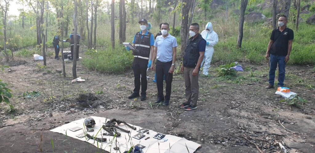 นางเกษรอายุ 50 ปี ชาวจ.ขอนแก่น บุตรสาวของนายสม อายุ 80 ปี ซึ่งได้หายตัวไปเมื่อคืนวันที่ 28 ธ.ค. 2564 ก่อนมีชาวบ้านมาพบกระดูกชิ้นส่วนกะโหลกศีรษะ ขากรรไกรล่าง กระดูกเชิงกราน กระดูกต้นขา กระดูกแขนบางส่วน บนเขาสวนกวาง พื้นที่ตำบลพังทุย อ.น้ำพอง จ.ขอนแก่น เมื่อวันที่ 30 มี.ค. ที่ผ่านมา ซึ่งเจ้าหน้าที่ตำรวจสภ.น้ำพอง ได้ส่งชิ้นส่วนกระดูกให้แพทย์นิติเวช รพ.ศรีนครินทร์ ตรวจอัตลักษณ์และตรวจสอบว่าโครงการดูกต่างๆนั้นมีบาดแผลถูกทำร้ายหรือไม่ โดยนางเกษร ในฐานะบุตรสาวได้เดินทางเข้าพบแพทย์นิติเวช เพื่อตรวจดีเอ็นเอเปรียบเทียบกับกระดูกดังกล่าว