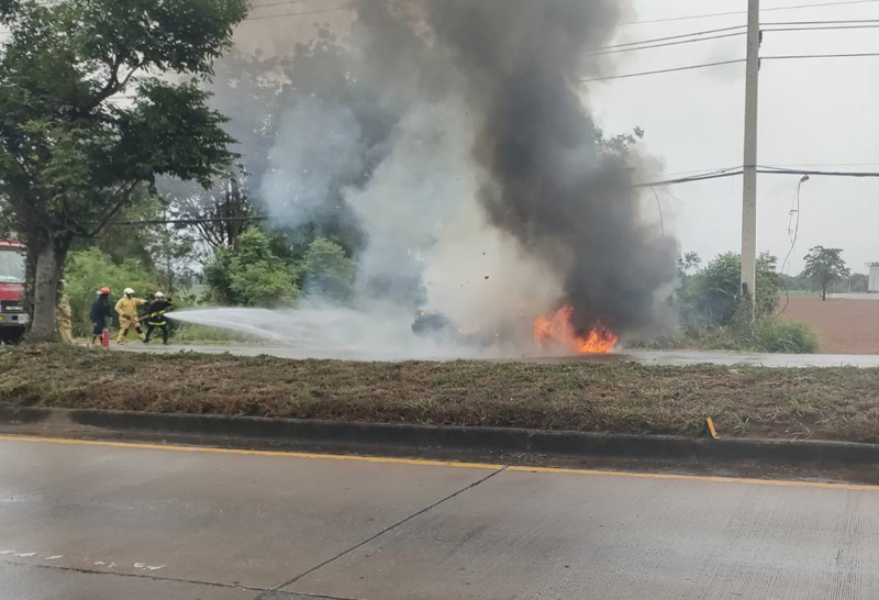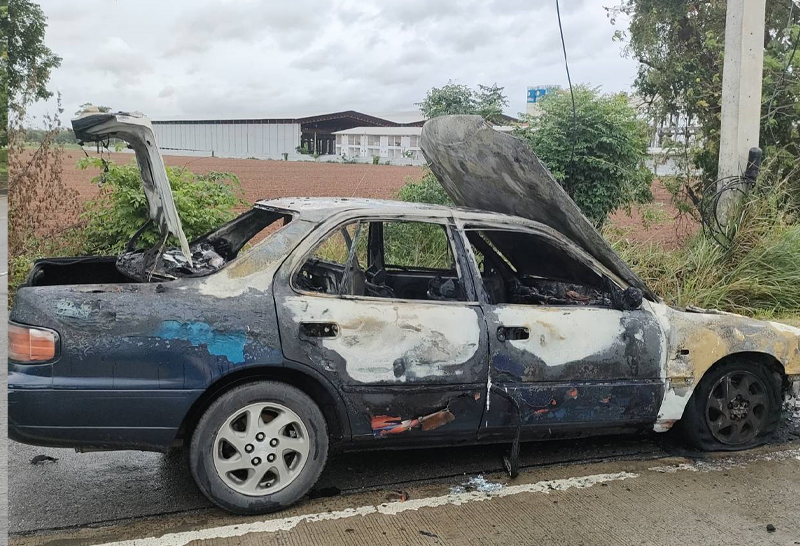 หนุ่มใหญ่ โคราชขับเก๋งไฟลุกไหม้ท่วมวอดทั้งคัน