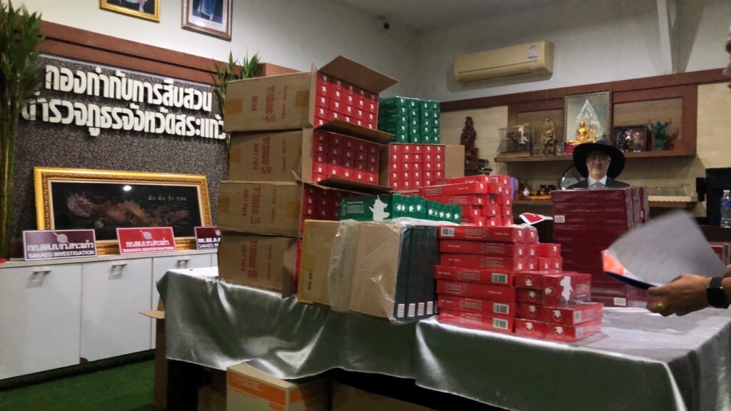 พล.ต.ท.ธิติ แสงสว่าง ผบช.ภ.2 พล.ต.ต.ณัฐพงษ์ สัตยานุรักษ์ ผบก.ภ.จว.สระแก้ว พ.ต.อ.จตุรภัทร สิงหัษฐิต ผกก.สส.ภ.จว.สระแก้ว และชุดปฏิบัติการพิเศษ กก.สส.ภ.จว.สระแก้ว จับกุมนายวีระ อายุ 50 ปี อยู่ อ.พระสมุทรเจดีย์ จ.สมุทรปราการ พร้อมของกลาง รถยนต์ยี่ห้อโตโยต้า ฟอร์จูนเนอร์ สินค้าหนีภาษีจำนวน 4,900 ซอง และโทรศัพท์มือถือ realme สีฟ้า 1 เครื่อง ได้ที่บริเวณสามแยกทางเข้า วัดทุ่งเจริญ-หนองผำวนาวาส ต.ท่าเกวียน อ.วัฒนานคร จ.สระแก้ว