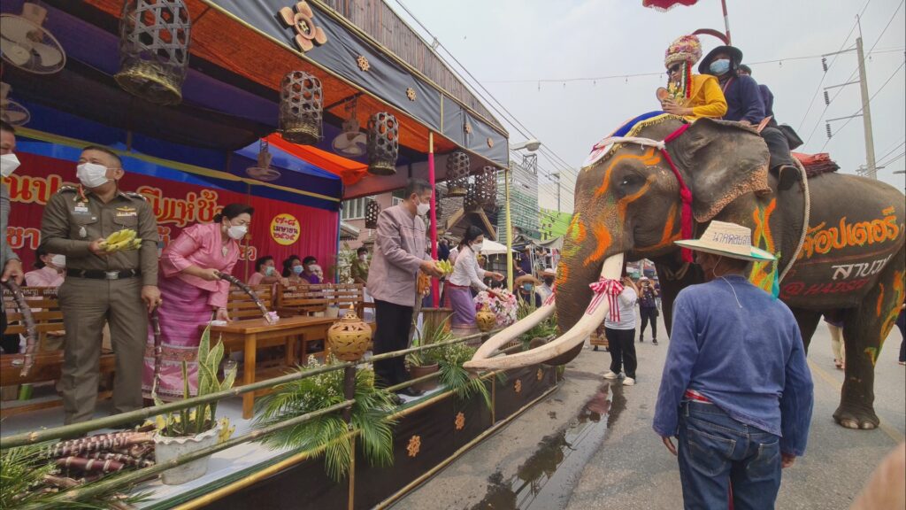 โดยมีประชาชนในพื้นที่ และนักท่องเที่ยวเดินทางมา รอชมขบวนแห่ช้างบวชนาค ที่หาชมได้ยากหนึ่งปีมีครั้งเดียว ในบรรยากาศสีสันสวยงาม และมีเอกลักษณ์โดดเด่น สำหรับการบวชนาคในปีนี้ มีนาค จำนวน 10 ราย ช้าง 10 เชือก ซึ่งนาคจะแต่งกายด้วยเสื้อกำมะหยี่นุงผ้าม่วงสีสันสดใส ใส่เครื่องประดับ ศรีษะส่วมเชิด และแต่งหน้าทาปากอย่างงดงาม พร้อมสวมแว่นดำ อันหมายถึง ผู้ที่ยังมืดบอดด้วยปัญญา ยังไม่ได้ศึกษาพระธรรม