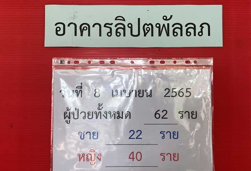 สำหรับโรงพยาบาลสนาม อาคารลิปตพัลลภ ฮอลล์ มีเตียงสำหรับผู้ป่วยโควิด-19 ทั้งหมด 150 เตียง ขณะนี้มีผู้ป่วยนอนรักษาตัวอยู่ 62 ราย แบ่งเป็นผู้ป่วยชาย 22 ราย และผู้ป่วยหญิงอีก 40 ราย ยังคงเหลือเตียงที่ว่างอีก 88 เตียง ซึ่งกว่า 70% เป็นผู้ป่วยสีเหลืองในกลุ่มเสี่ยง 608 อย่างไรก็ตามทางโรงพยาบาลสนามก็ยังคงเตรียมความพร้อมทั้งในส่วนของอุปกรณ์ทางการแพทย์ต่างๆ การทำความสะอาด และการเตรียมความพร้อมเจ้าหน้าที่เพื่อรองรับสำหรับในกรณีเกิดการแพร่ระบาดในช่วงสงกรานต์