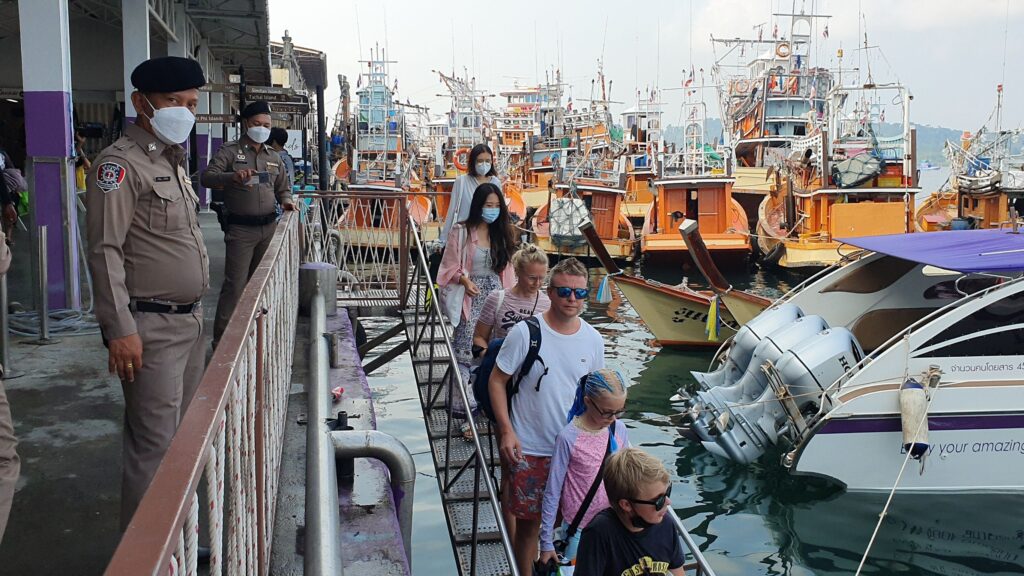 ที่ท่าเรือ ว้าว อันดามัน บ้านทับละมุ ต.ลำแก่น อ.ท้ายเหมือง จ.พังงา บรรยากาศทั่วไปช่วงวันหยุดยาวสงกรานต์ กลับมาคึกคักอีกครั้ง มีนักท่องเที่ยวชาวไทยและชาวต่างชาติต่างมารอลงเรือเพื่อเดินทางไปยังหมู่เกาะสิมิลัน หลังจากที่บรรยากาศเงียบเหงามานานหลังจากเกิดโรคไวรัสโควิด 19 ระบาด ประกอบกับคนไทยสามารถใช้สิทธิเราเที่ยวด้วยกันได้