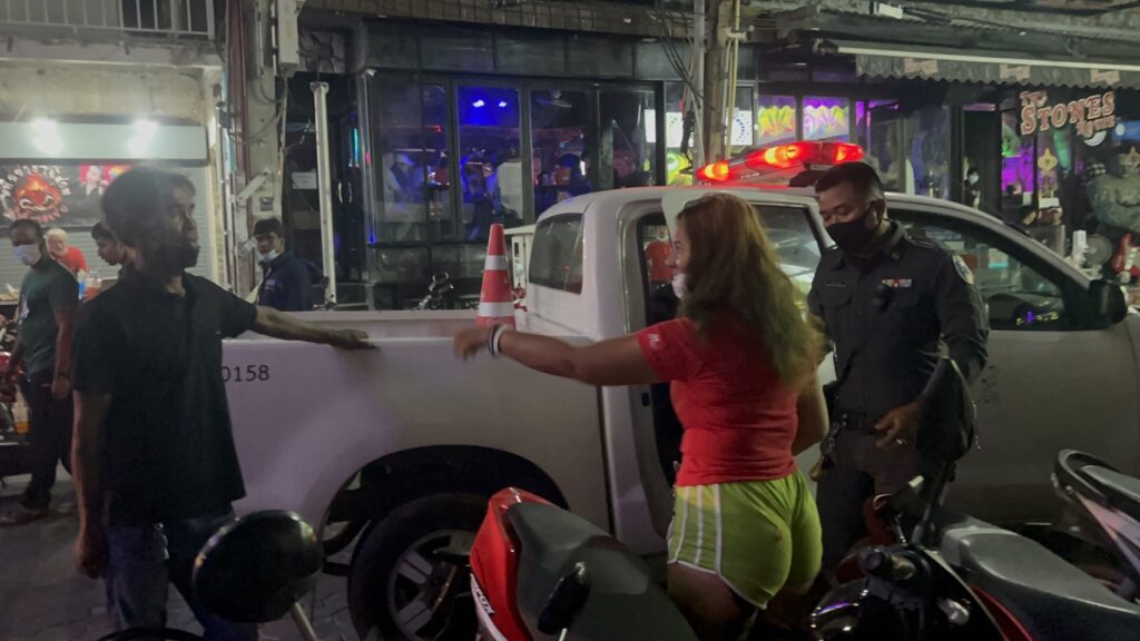 ส่วนผู้ก่อเหตุเป็นผู้หญิงสวมเสื้อสีแดง กางเกงสีเขียว เมื่อเจ้าหน้าที่มาถึงก็โวยวาย ด่าทอ ใช้เท้าถีบเจ้าหน้าที่ตำรวจ ใช้เวลาเกือบ 20 นาที ก่อนจะควบคุมตัวไปสภ.เมืองพัทยาได้ สอบถามนายโกวิทย์ น.ส.อุมาพร พ่อค้าแม่ค้าส้มตำ ทราบว่า ผู้ก่อเหตุมาหาเรื่องที่ร้าน เถียงกันไปมา ผู้ก่อเหตุจึงชักมีดขึ้นมาแทงใส่ นายโกวิทย์ แต่ไม่โดน ผู้ก่อเหตุยังไม่พอใจ คว้ามีดอีโต้ที่ร้านไล่ฟัน ทุกคนต้องพากันวิ่งหลบหนีเอาตัวรอด