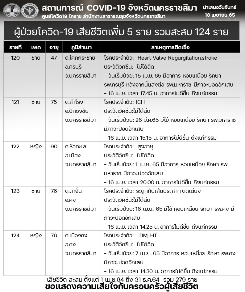 “โคราช” ตัวเลขผู้ป่วยโควิด-19 หลังสงกรานต์ยังพุ่งสูง