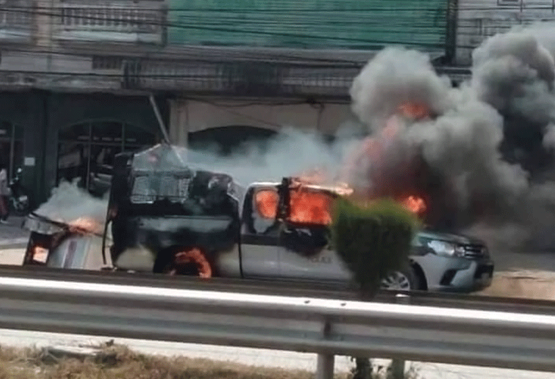 ระทึก!ผู้ต้องหาเผารถคุมขังขณะไปศาลอุดรฯ