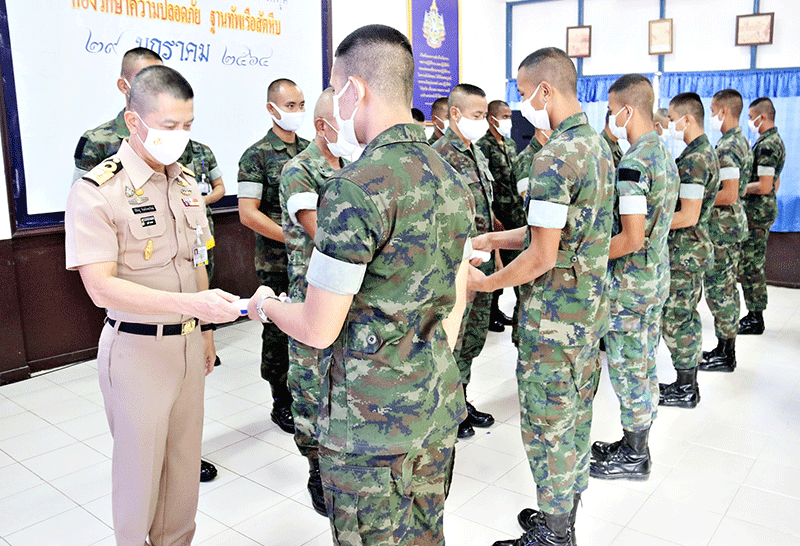 ทหารกองประจำการในสังกัด กองรักษาความปลอดภัยฐานทัพเรือสัตหีบที่จะครบกำหนดปลดเป็นทหารกองหนุน ในวันที่1 ก.พ. 2564 นี้ มีจำนวนทั้งสิ้น 99 นาย ตลอดระยะเวลาที่รับราชการ ทหารทั้ง 99 นาย มีความมานะอุตสาหะ และตั้งใจในการปฏิบัติหน้าที่ราชการด้วยดีมาโดยตลอดและในโอกาสที่จะปลดประจำการไปนี้ กองรักษาความปลอดภัยฐานทัพเรือสัตหีบ ได้จัดทำใบประกาศเกียรติคุณ ของที่ระลึก ให้แก่ทหารปลดทุกนาย
