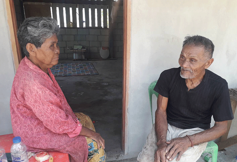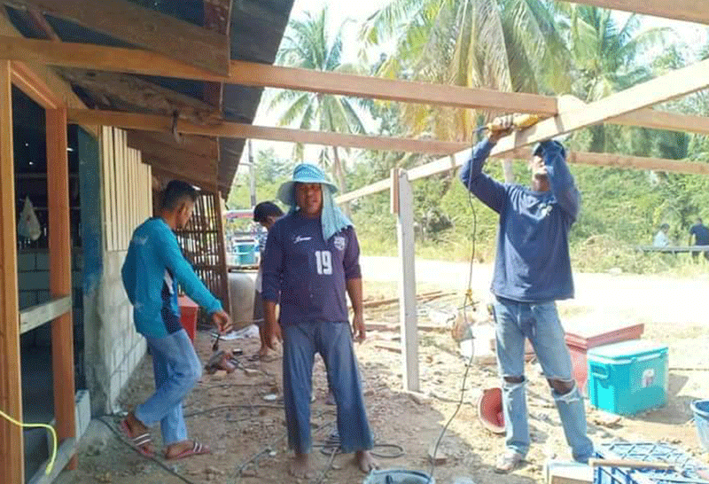 โดยก่อนหน้านี้สองสามีภรรยาได้พักอาศัยอยู่ในเพิงพัก ซึ่งมีสภาพเก่าทรุดโทรมใกล้จะพัง ชาวบ้านในหมู่บ้านจึงเกิดความสงสารได้ร่วมแรงร่วมใจสละเงินส่วนตัวและ แรงกายช่วยกันต่อเติมสร้างบ้านให้ใหม่ โดยได้รับการสนับสนุนจากหน่วยงานราชการต่างๆ ในจังหวัด อบต.อ่าวน้อย และหน่วยงานภาคเอกชน เกี่ยวกับการจัดซื้อวัสดุอุปกรณ์ ต่างๆ ในการก่อสร้างจนใกล้แล้วเสร็จสมบูรณ์ ซึ่งสร้างความดีอกดีใจให้กับ 2 ตายายคู่นี้เป็นอย่างมาก